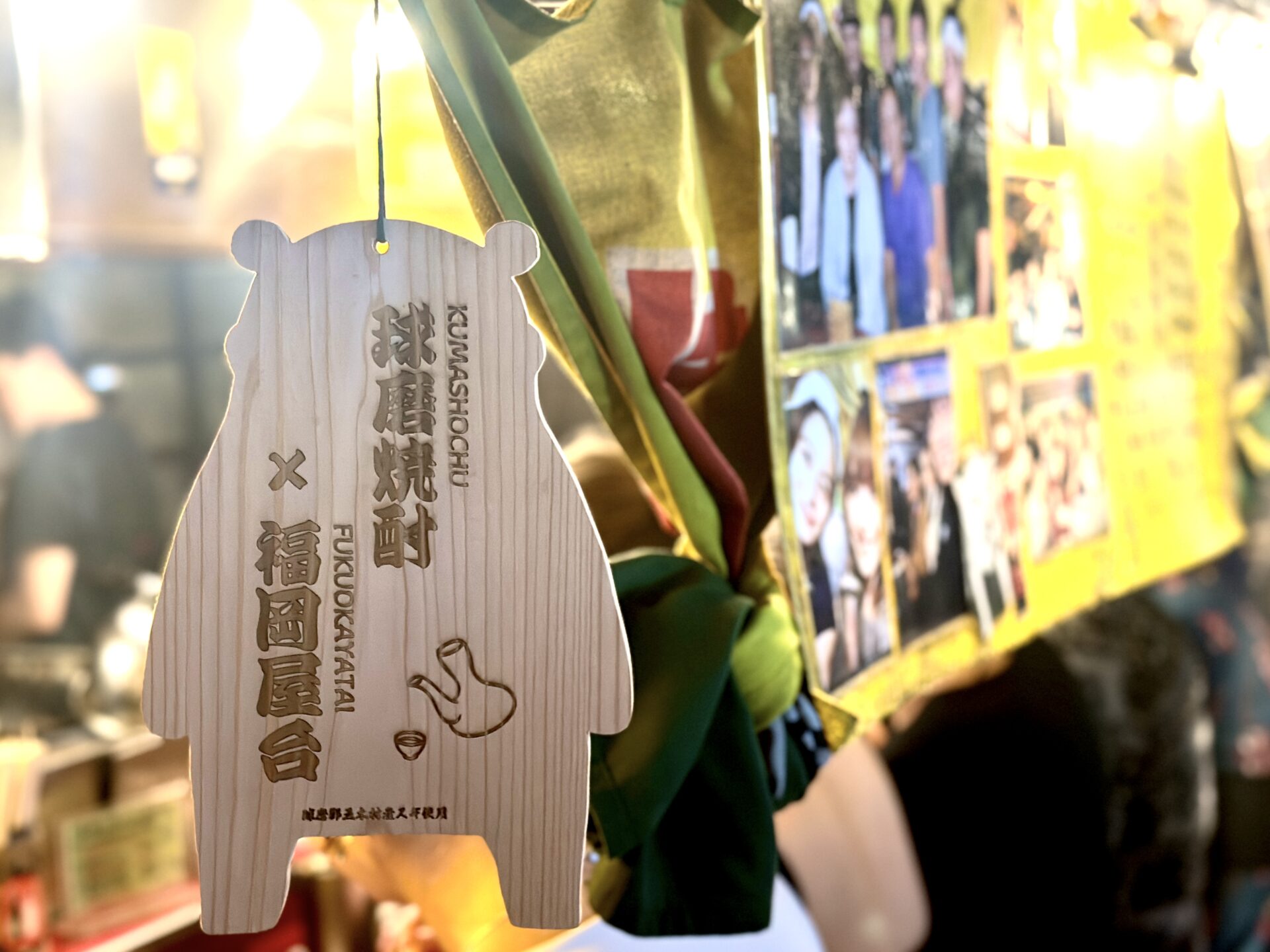 10月8日(水)~28日(火)で開催中の「球磨焼酎×福岡屋台」参加の目印はこちらの「くまモン型木札」!