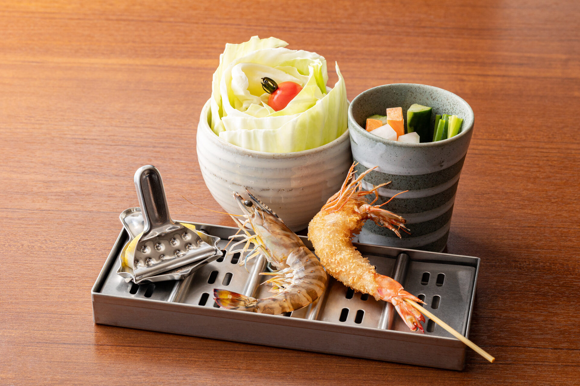 車海老の頭の香ばしさと身の甘さをレモンとオリジナルの味塩でご賞味ください。