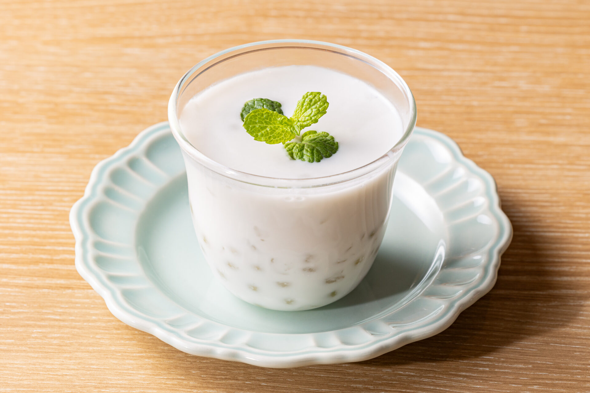 10F ルクアダイニングマンゴツリーカフェ 大阪 牛乳 タピオカココナッツミルク(山吹色の ジャージー牛乳使用)500円(税込)数量限定くまもと産の新鮮な牛乳を使い、ココナッツミルクと合わせることで濃厚でいて後味はさっぱりとした自慢の一品です。