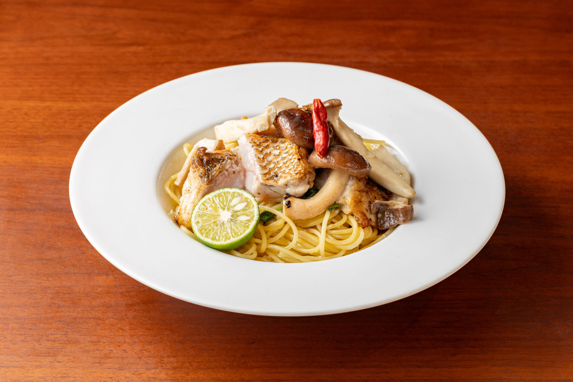 10F ルクアダイニングスパッカ アルバータ マダイ 熊本天草の天然真鯛と松茸の ペペロンチーノ 酢橘の薫り2,200円(税込)ディナー限定熊本天草の天然真鯛を贅沢に使用!香い高い松茸と合わせたペペロンチーノは熊本フェア限定。真鯛の旨みをご堪能ください。