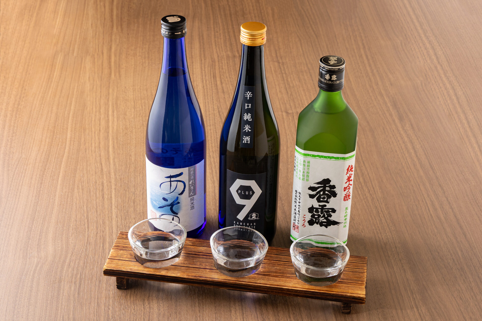 B2F 阪神バル横丁 バルゾーン京のおばんざい ぽんしゅ杉 日本酒 くまもとモン 三種飲み比べ1,200円(税込)清らかな水と肥沃な大地に育まれた熊本の銘酒を3種集めました。香り、旨味、余韻……移ろう味わいに熊本の風土を感じてください。